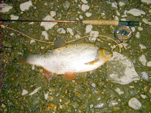 Ein schöner Aland in der Lippe von Torsten Rühl gefangen. Ein Wolly Bugger in schwarz/grün GR. 8 konnte den Fisch kurz vor der Dunkelheit aus dem Gumpen locken.