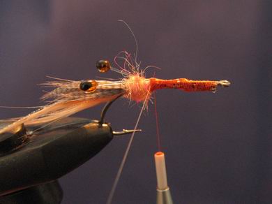 Das Dubbing auf den Faden dubben und konisch von den Augen zum Öhr dubben. |