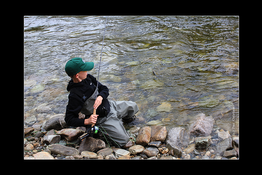 Julius, 13 Jahre jung ... "Einer von dem man später sicher noch hören wird... Julius Vater gab mir den Auftrag als Guide, seinem Sohn die Feinheiten des Fliegenfischens beizubringen. Das Werfen ging ihm schon einigermaßen gut von der Hand. Im weiterem Verlauf am Wasser zeigte sich Julius als ein fanatischer junger Mann mit einem enormen Willen, das Fliegenfischen zu lernen. Er passte gut auf, was ich sagte und schaute sich gut ab, was ich tat - und tat dasselbe. Das Resultat ließ dann auch nicht lange auf sich warten und Julius hatte schon schnell eine schöne Äsche in der Hand und eine stolzes Lächeln im Gesicht. Nur waren seine Arme leider noch etwas zu kurz. Aber das macht nichts, die werden schon noch länger... !" |