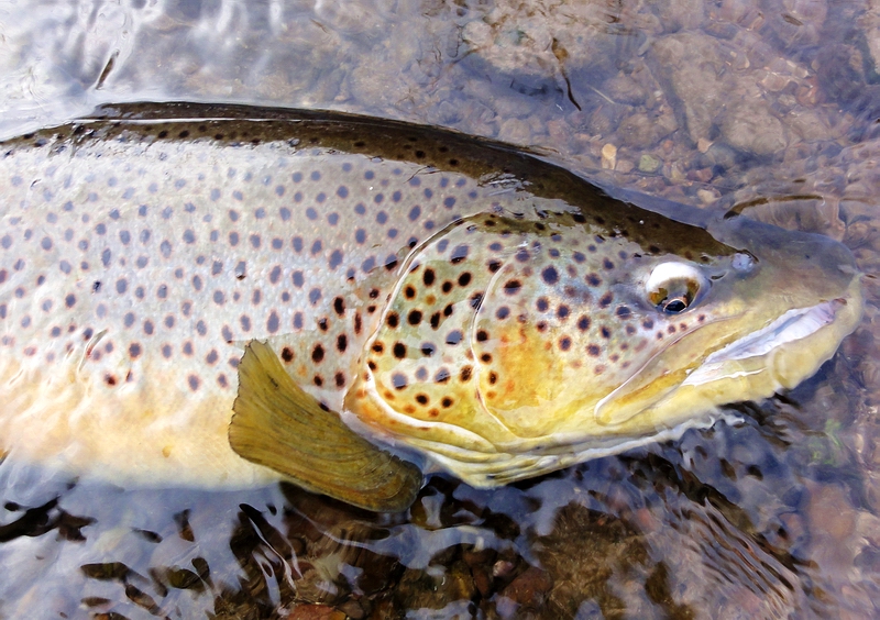 Eigentlich wollte Vereinschef Michael nur mal eben im Spätherbst ein Stündchen nach den Äschen schauen, dementsprechend war auch die mitgeführte Ausrüstung ausgelegt: ein sieben Fuß Rütchen Klasse #4. Die Überraschung war groß, als diese urgewaltige und außerordentlich gut konstituierte Bachforelle mit 70 cm Länge und geschätzen 4 bis 4,5 Kilogramm Gewicht am Haken hing... Ein Ausnahmefisch, wie er auch in besonders gehegten Revieren wie unserer Ilmstrecke nicht alle Jahre gefangen wird! Da bereits Schonzeit für Forellen war, blieb der große Milchner im Wasser und wurde nach ein paar raschen Fotos ohne wenn und aber - jedoch mit den besten Wünschen einer Wiederbegegnung in der nächsten Saison - rasch wieder freigelassen.