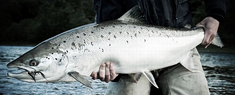 einen blitzblanken Lachs mit einer Länge von 95cm und einem Gewicht