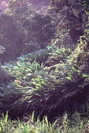 Die Straße windet sich durch dichten tropischen Regelwald. ![]() |