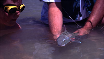 entfernt. Wie David voraussagte, zeigen sich schon bald die ersten Tarpon.