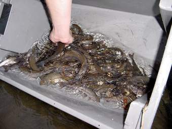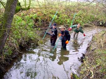 Wie in jedem Spätherbst wurde auch in diesem Jahr von Mitgliedern des Ilmtal-Fliegenfischer Vereins e.V. Bad Berka das elektrische Abfischen des Aufzuchtbaches "Schwarza" und das anschließende Umsetzen der ein- und zweijährigen Bachforellensetzlinge in das Pachtgewässer des Vereins, die Ilm, durchgeführt. Die "Schwarza" wurde vom Verein auf einer Länge von rd. 10 Kilometern eigens zu Aufzuchtszwecken angepachtet: Im Frühjahr wird mit Bachforellenbrut besetzt und im Herbst erfolgt das Umsetzen der herangewachsenen Fische in die Ilm. |