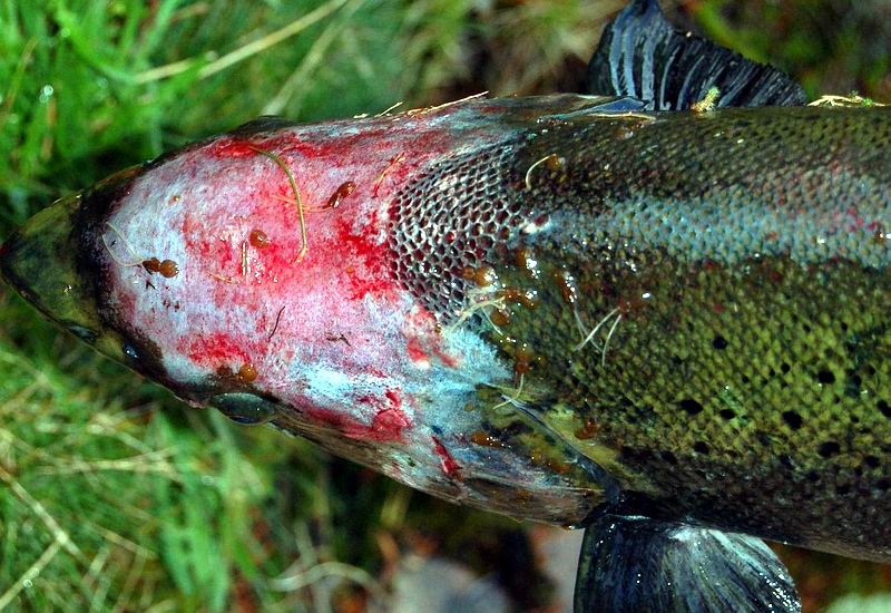 von Meerläusen. Dieses Bild stammt von einem ausgewachsenen Lachs,