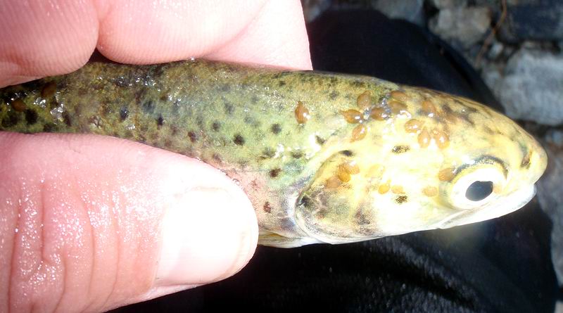 Fischarten lebt, er ähnelt der Lachslaus, ist aber kleiner, hat eine
