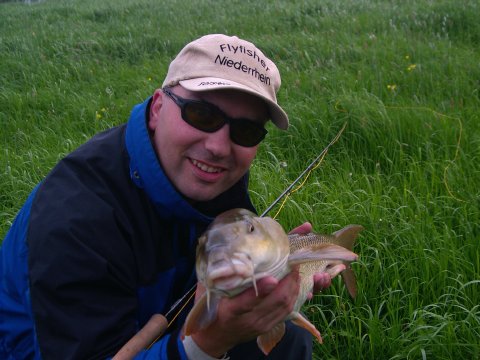 ... Eine schöne Barbe aus der Lippe biss auf beschwerte Nymphe