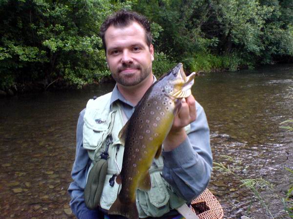 "... eine meiner Forellen vom letzten Tripp an Thüringer Gewässer (2.7.05): BF, 44 cm und wunderhübsch. Im Magen befand sich noch eine unverdaute Maus von ca. 10 cm Länge..." | Foto & Copyright: Marko Zühlke