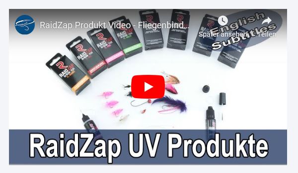 Weiteres erhältliches Zubehör: - Ersatzteilset mit 2 Schraubkanülen, Silikonsicherung und Pinsel-Schraubkappe: 6,90 € - Set RAIDZAP UV-Kleber "Medium" mit (kleiner) UV-Lampe: 29,90 € - UV-Lampe Raidzap R7 365 Pro, inkl. Akku, Tasche und USB Kabel = die ideale Lampe für alle Raidzap Kleber: 49,90 € Unser Fazit: Die RAIDZAP UV-Kleber und Fluo-Lacke sind mit ihren verschiedenen Viskositäten und dem mitgelieferten Dosierungszubehör sehr einfach zu dosieren und komfortabel zu verarbeiten. Für uns ganz klar einer der besten derzeit verfügbaren UV-Lacke zum Fliegenbinden! |