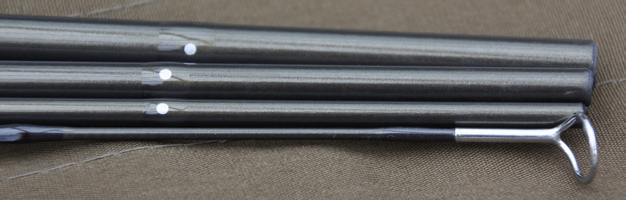 | Nähere Betrachtung und Praxistest: In Sachen Ausstattung und Verarbeitung lässt unsere Testrute keine Wünsche offen, ebenso wenig wie bei der gelungenen farblichen Zusammenstellung: einfach aber schick. Die dunkelolivgrüne Farbgebung der Rute im Verbund mit zartgrauen und Black Nickel Elementen empfinden wir als angenehm und dezent. Die Orvis Recon wurde sehr sauber beringt und lackiert, ihre Ausstattung ist sehr gut, ebenso wie die Gesamtverarbeitung, hinzu kommt ein umfassender Lieferumfang mit Futteral und schönem Alu-Rohr, alles farblich perfekt aufeinander abgestimmt. Der praxisgerecht geformte Full Wells Griff hat für diese Rute die richtigen Dimensionen und weist eine erstklassige Kork-Qualität (!) auf, er liegt sicher in der Hand und der leichte und dennoch sehr sichere Doppelmutter- Alu-Rollenhalter arbeitet leichtgängig und zuverlässig. Die Überschubverbindungen greifen ausreichend tief ineinander und halten die Rute sicher zusammen. Kleine Punktmarkierungen auf allen Rutenteilen erleichtern das schnellere Ausrichten beim Zusammenstecken der Rute. | ![]() |