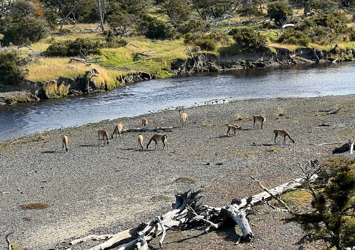 der Lodge zu Mittag - eine Guanaco-Herde schaut vorbei.