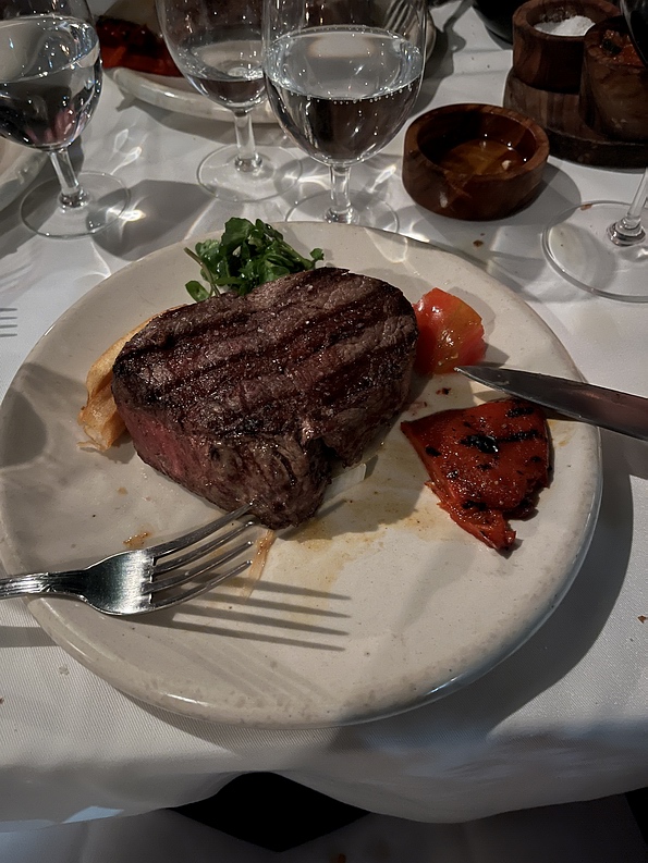 der Welt. Es gibt kein Steak unter 500 Gramm auf der Karte, und einen Weinkeller