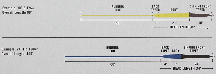 | Länge: | Gesamt: 30,50 Meter (davon 7,40 m schwarze Sink Tip Spitze und 3,60 weiße Restkeule inkl. Rear Taper und 19,50 m ebenfalls weiße Runningline). |