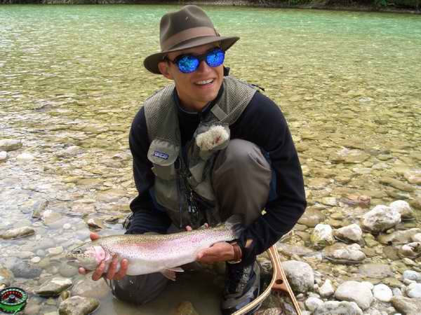 ...Schöne Regenbogenforelle aus der Sava. Nach 10-minütigem Drill mit der Trockenfliege (Daddy long leg)... (1) | Foto und Copyright: Oliver Malesevic