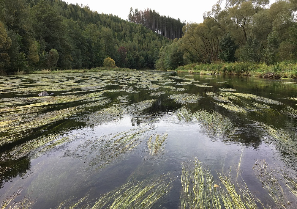 Kiesschotterbänken führt zu einem reichen Wasserpflanzenwuchs