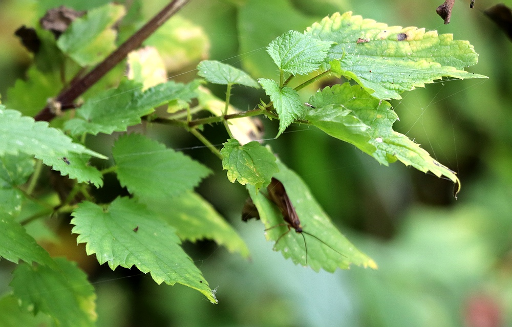 sich, indem sie die voller Insektenlarven steckenden Hahnenfußpflanzen