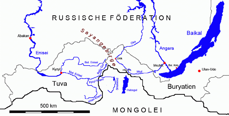 Das russisch-mongolische Grenzgebiet durfte ich auf der mongolischen Seite der Berge im Jahr 2007 erkunden (siehe hier und hier). Aufgrund der Unzugänglichkeit und Größe übt das kaum besiedelte Wildnisgebiet auf der russischen Seite eine besondere Faszination aus. Grund genug für Harald Edinger, begeisterten Bootfahrer und Fliegenfischer, und mich, Ende August 2009 vom bekannten Baikalsee Richtung Westen aufzubrechen. Die geografischen Bezeichnungen für dieses südliche Eck Sibiriens – Buryatien, Tuwa und Sayangebirge – sind weniger geläufig, sodass dem Leser die beigefügte Karte die Orientierung erleichtern wird. Unsere Anreise erfolgt von Moskau über Irkutsk, der Stadt an der Angara, die einst als „Paris Sibiriens“ tituliert wurde. Hier den nahen Baikalsee einfach links liegen zu lassen, wäre ein Frevel, so war von vornherein klar, zuerst dieses einzigartige Gewässer zu besuchen und erst im Anschluss die eigentliche Tour im Sayangebirge zu starten. |