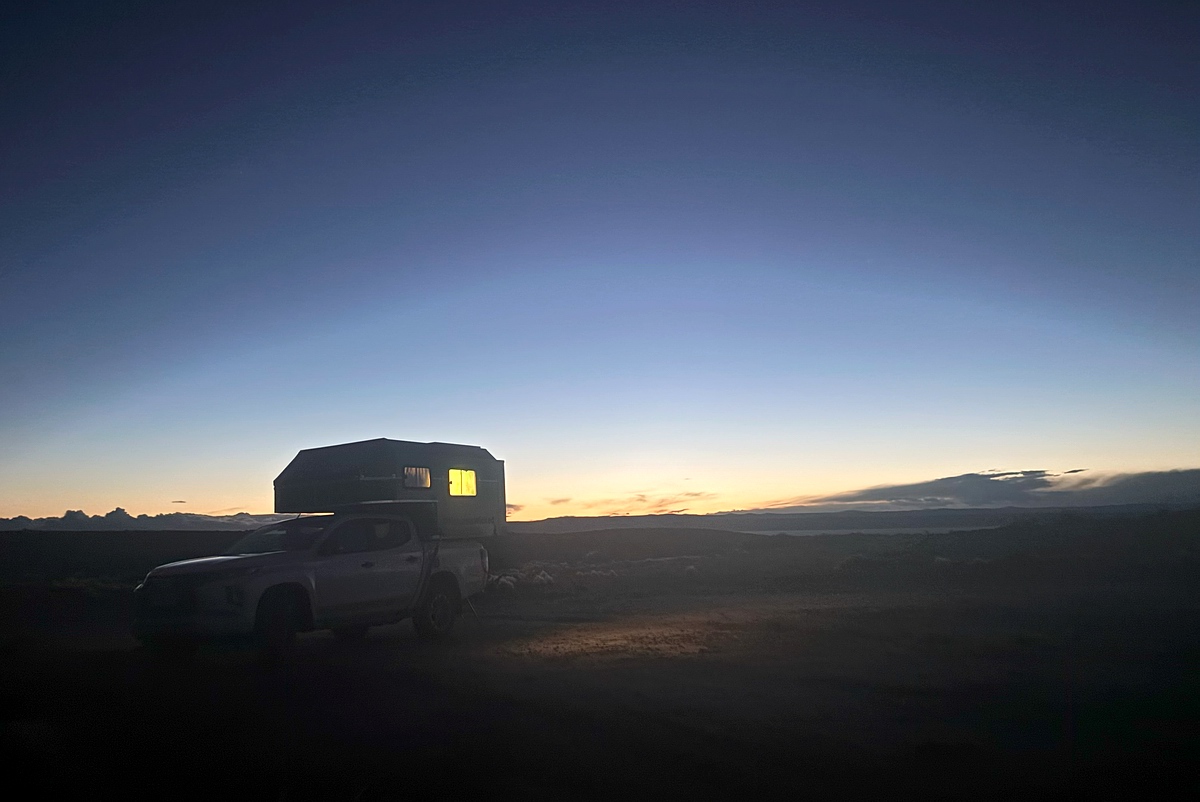 Die Fahrt zur Grenze war auch mega. Nachdem die Strecke kurz vor Cochrane den Rio Baker verlässt, führt sie durch den National Park Patagonia und so langsam stellt sich auch die karge Landschaft des Südens ein. Wir waren hin und weg und auch für mich war es mal wieder ein Stück Neuland. Nun sollte es ein letztes mal auf die andere Seite der Anden gehen. Da dieser Grenzübergang so abgelegen ist, muss man sich vorher anmelden, denn dort oben gibt’s kein Internet. Sämtliche An- und Abfragen für die man welches benötigt, müssen vorher erledigt werden, sonst wird man zurück geschickt. Am Posten selbst wird dann alles per Hand übertragen und später ins System eingespeist. Die 80 Kilometer auf der argentinschen Seite bis zur „Autobahn“ waren nicht weniger schön. Jedes Stückchen weiter verändert sich die Wüste und man muss alle paar Meter anhalten um endlos viele Fotos zu schießen. Auf der Ruta 40 angekommen, hieß es dann Strecke machen. Viel mehr bleibt einem da aber auch nicht übrig, denn die nächsten 600 Kilometer hat sich kaum ein Blick verändert. Endlose Pampa und erbarmungsloser Wind. Da kommt man auch schon mal ins Schwitzen, wenn man den steigenden Verbrauch und die noch zu fahrenden Kilometer bis zu nächsten Tankstelle zusammen fügt. Aber es ging alles gut und nach einer sehr windigen Nacht im freien Feld erreichten wir El Calafate, dem Ausgangspunkt zum Perito Moreno Gletscher. Erstmal stand allerdings eine heiße Dusche an, die erste seit der Autoübergabe. Oh Mann tat das gut! |