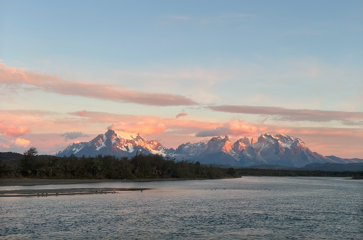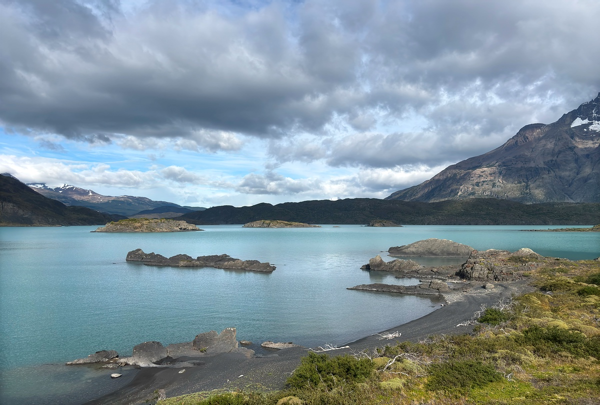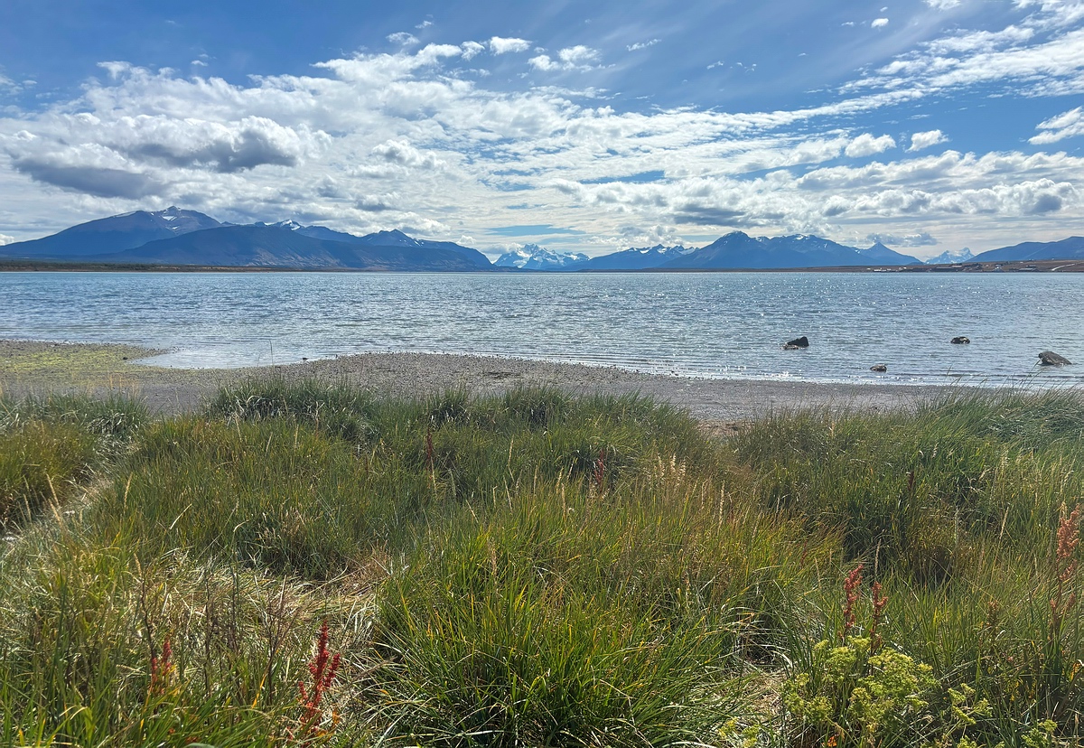 Blick vom Strand in Puerto Natales, dem Ausgangort für Tagestouristen