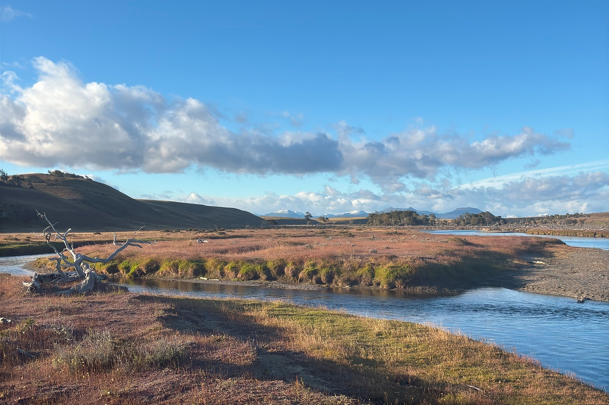 Klar wäre ich gerne auch etwas weiter abseits unterwegs gewesen, hätte die 3 Wochen auch nur der Fischerrei widmen können und hätte immer noch nicht genug, aber alles in allem wars ein perfekter Mix. Ich bin froh, dass ich (wie immer) nicht nur geangelt habe, denn die Landschaft ist einfach viel zu schön, um nicht auch auf anderen Wegen erkundet zu werden. Gefischt hab ich meistens eine #6er mit Schwimmschnur und vor allem mit kurzer Keule. Die ist bei dem fast immer währenden starken Wind wirklich Gold wert. Man liest zwar viel und überall darüber, aber ich kann es auch nur noch einmal mehr betonen. Der Wind kann mitunter ganz schön nervig sein. Als ich 2020 das erste Mal auch eine Fliegenrute mit da Runter genommen hatte, bin ich voller Vorfreude an den Rio Simpson gestürmt. Endlich den Traum vom Fliegenfischen in Patagonien erfüllen!! Tja, nach 15 Minuten und hunderten Windknoten tauschte ich sie genervt gegen die Spinnrute und fragte mich, wie das hier überhaupt Spaß machen kann. Damals hatte ich keinen halben Sommer Übung und war noch ziemlich unerfahren, aber auch heute wars nicht immer einfach, die Fliege dahin zu befördern, wo sie landen soll. Wenn es dann aber klappt, ist es umso schöner. Dafür dass ich selten