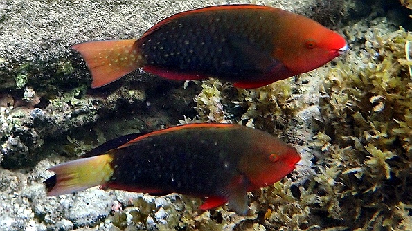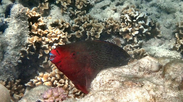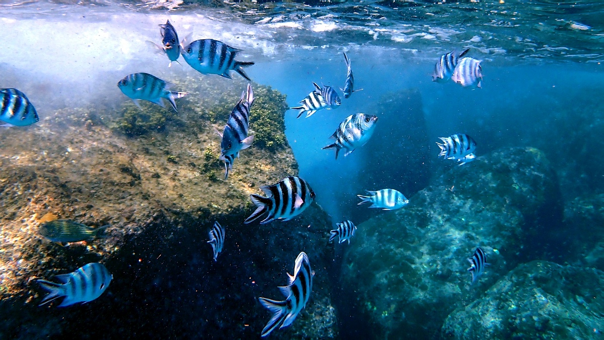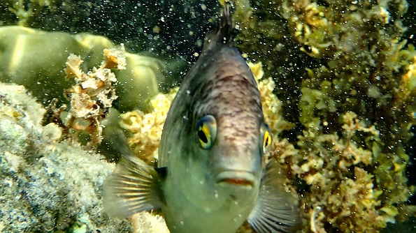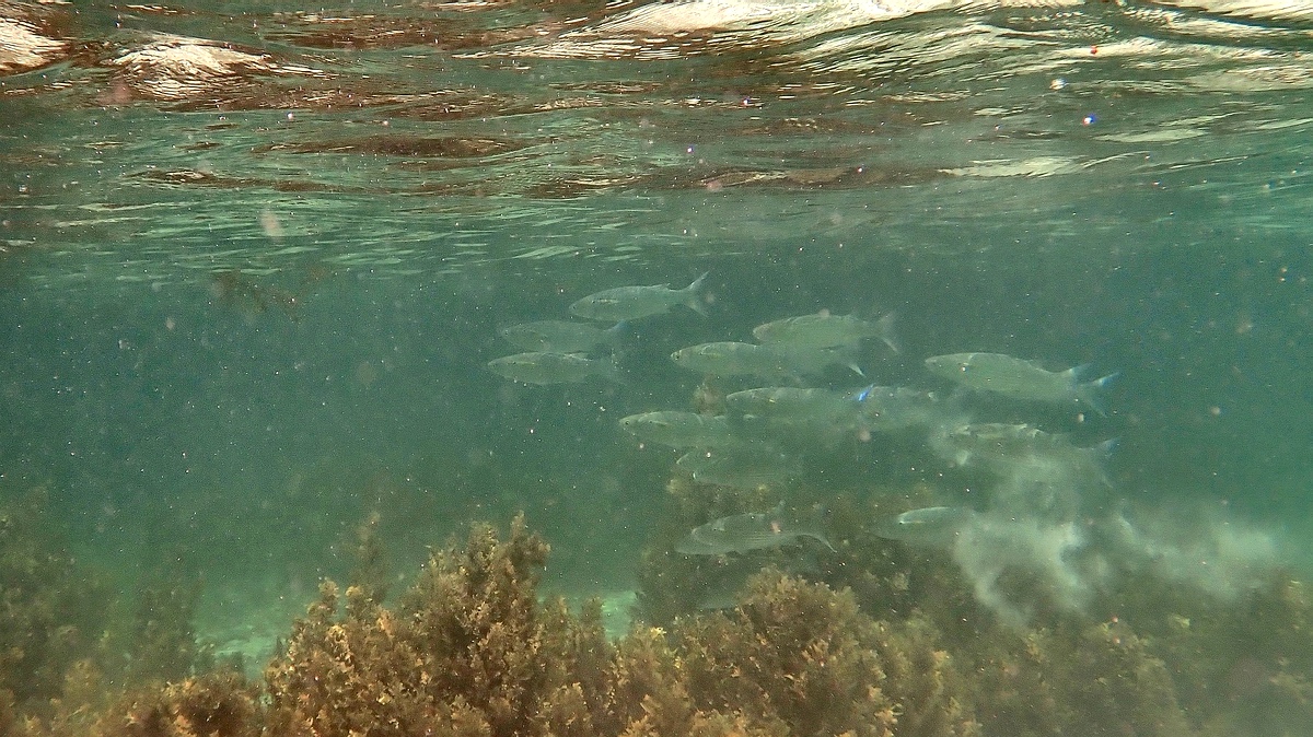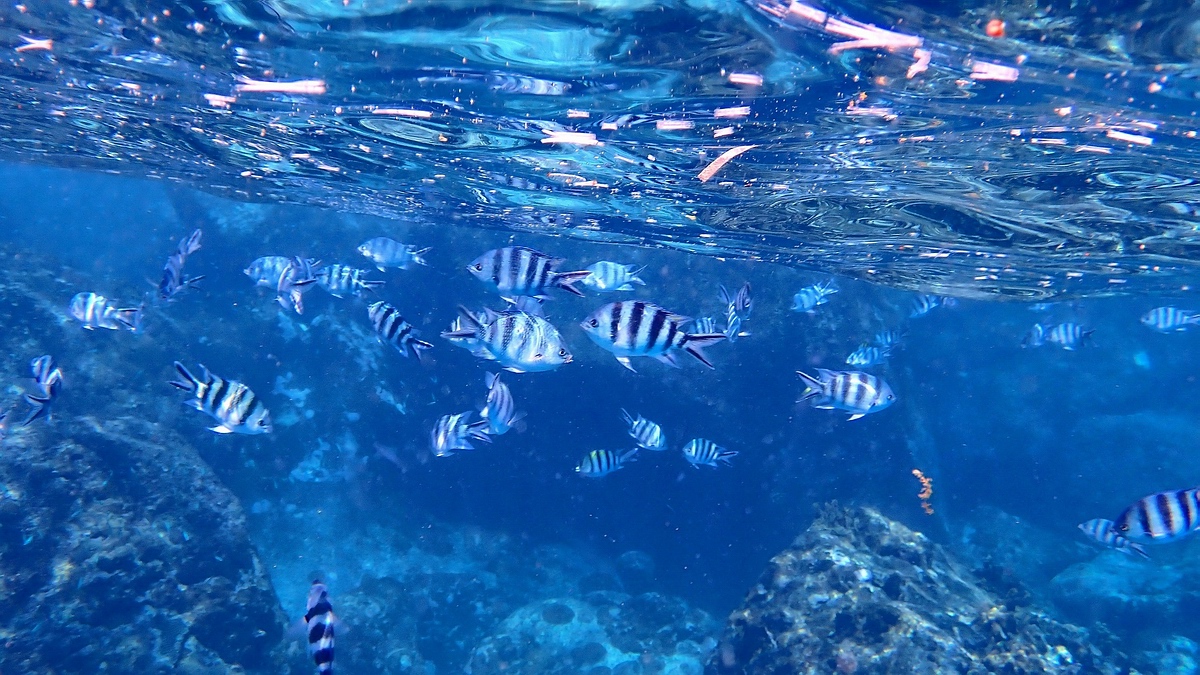 hier schwammen im Meeresschutzgebiet (Angeln verboten) beim Schnorcheln