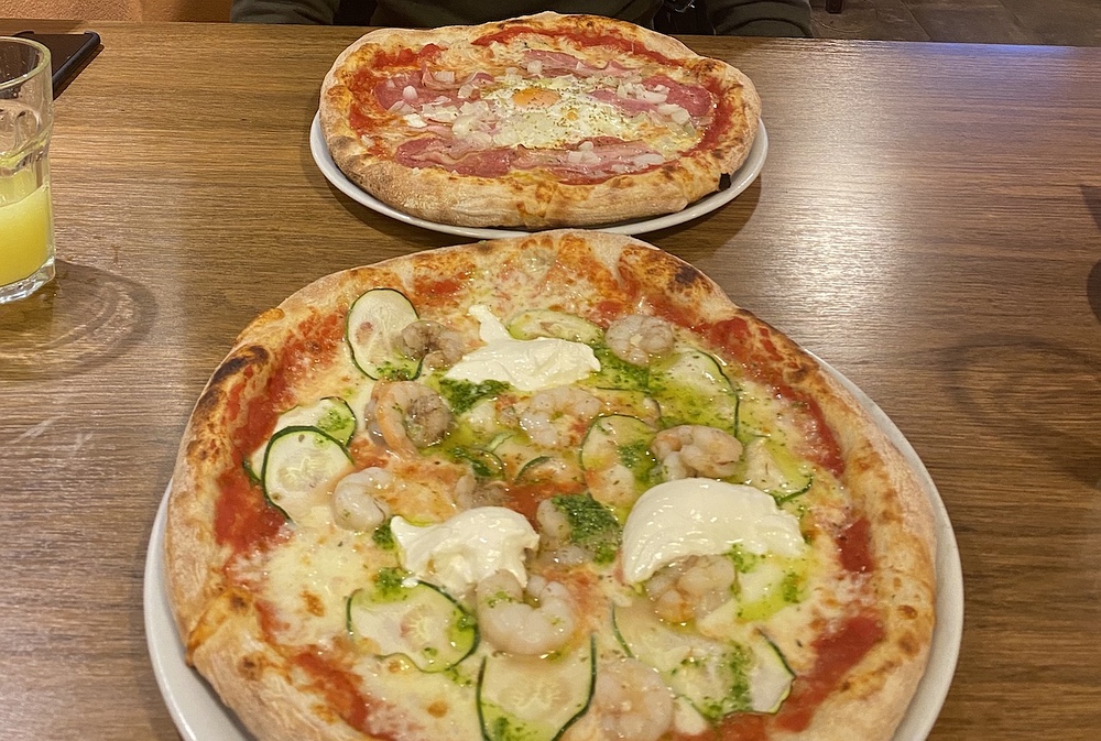 | Die Wolken verhießen nichts Gutes und die Abenddämmerung brach kurze Zeit später auch ein. Auf dem Weg Richtung Bovec (hier mündet die Koritnica in die Soca) knurrte dann auch so langsam der Magen und wir fanden, glücklicherweise direkt an der Straße gelegen die Pizzeria „Gostilna Pizzeria Pod Lipco“, wo wir einkehrten. Das Restaurant hatte gerade erst geöffnet, so dass wir freie Platzwahl hatten. Wir bestellten Pizzen, und während wir auf das Essen warteten, nutzte ich die Zeit, auf GoogleMaps nach Angelspots an der Idrijca zu schauen. Die Pizzen waren sehr gut, die Gerichte der später eingetroffenen Gäste sahen ebenfalls vorzüglich aus. |
