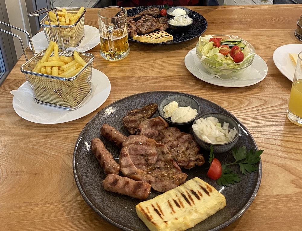 Das Wasser war hier deutlich klarer als an den vorherigen Spots, so dass ich vorsichtig hineinwatete. Ich versuchte mein Glück mit zahlreichen Driften mit der Nymphe in Rinnen und in den kleinen Pockets hinter Steinen – leider ohne Erfolg. Meine Konzentration ließ mittlerweile auch nach, der Tag im Wasser bei den Temperaturen setzt dann doch schon zu. Nach weiteren erfolglosen Versuchen mit Streamern verkündete ich meiner Dame dann das Ende des Angeltags. Nach dem dann alles an Equipment wieder verstaut war und ich wieder aufgewärmt im Auto saß, planten wir eigentlich noch ein paar Kilometer Richtung Hauptziel zu fahren – Bosnien. Zuerst musste aber das ausgefallene Mittagessen nachgeholt werden, sodass wir kurzerhand nach nur wenigen Kilometern in einem lokalen Grill-Restaurant den Abend mit deftigem landestypischen Essen ausklingen ließen. |