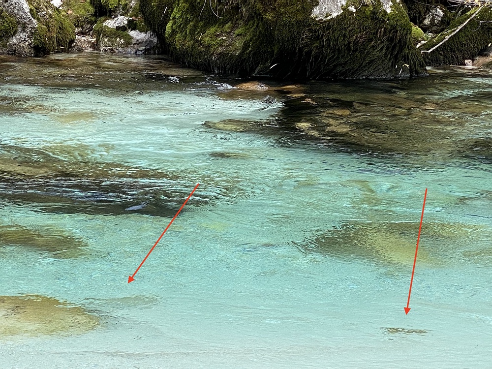 | Einen schönen Tagesabschluss bereiteten dann noch einige Fische unterhalb des Zusammenflusses der in der Lepenca und Soca. |