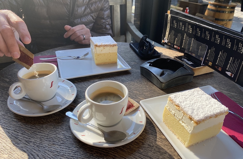 | Zum Mittag probierten wir dann nach einem Seespaziergang die berühmte Bled Cremeschnitte in einem Cafe. |
