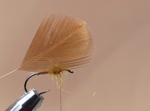 5-6 Fibern einer oliven Mallardfeder einbinden