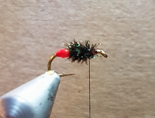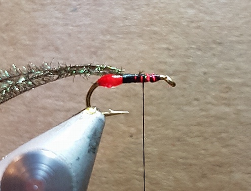 Mit dem Dubbingstrang einen Thorax formen,