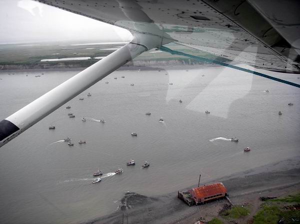 Lachsfischerei (Sockeye) auf dem Nagnek River. Hunderte kleiner Gillnet