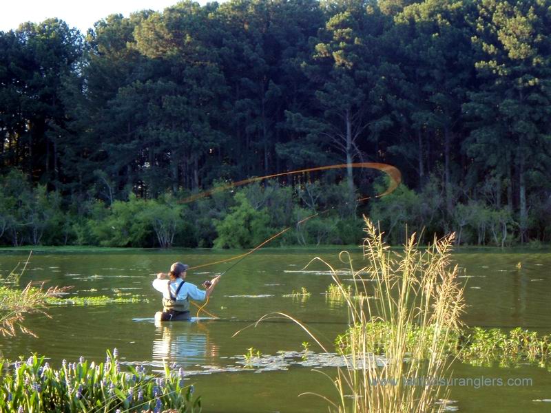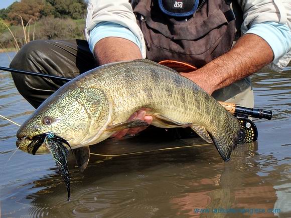 Den ersten Tararira fing ich überraschender Weise bei einer winterlichen Dorado-Pirsch in offenem, nicht mehr verkrauteten Mittelwasser, ein Überraschungsfang! Carolina ging das Ganze schon wesentlich professioneller an, Sie präsentierte ihre Fiege an der stark verkrauteten Uferkannte, an der sie zuvor Aktion bemerkte - und hakte prompt ein durchaus schönes Exemplar von einem Hoplias in der 2 Kilo-Klasse, und dass im Spätherbst, also im Mai! Das alles sollte sich nun ändern. Das Frühjahr bringt mit die besten Gelegenheiten, die Fliege überhaupt zu platzieren, der Tararira verlässt die tiefen Gumpen, um sich in den nun langsam erwärmenden Flachwasserzonen, um es lax auszudrücken, die Batterien aufzuladen und das Fehlen des üppigen Wasserpflanzenwuchses tut das übrige, die künstliche Fliege einigermaßen gut zu platzieren zu können. |