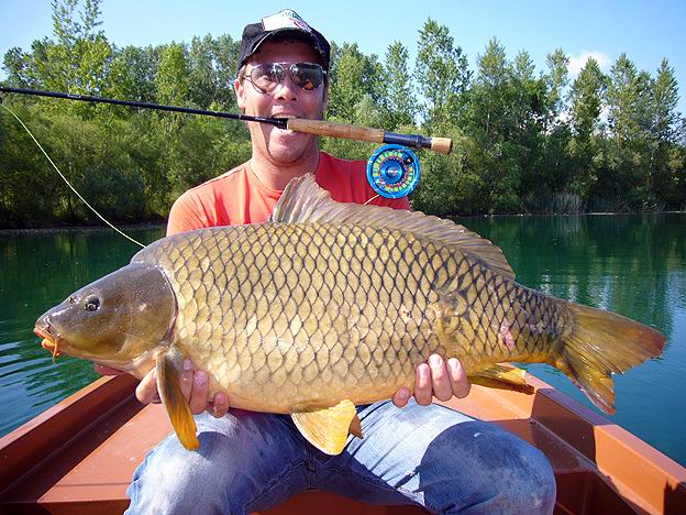 Der Karpfen ist mein bisher schwerster Fisch an der Fliegenrute gewesen...