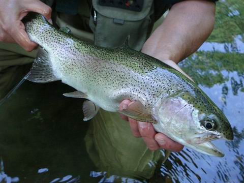 das Bach-, und Regenbogenforellen bis zu 60 cm beheimatet. Egal wie die