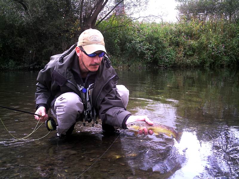 "Diese schöne Bachforelle fing ich am 10.10.2010 in der Dill bei Herborn"