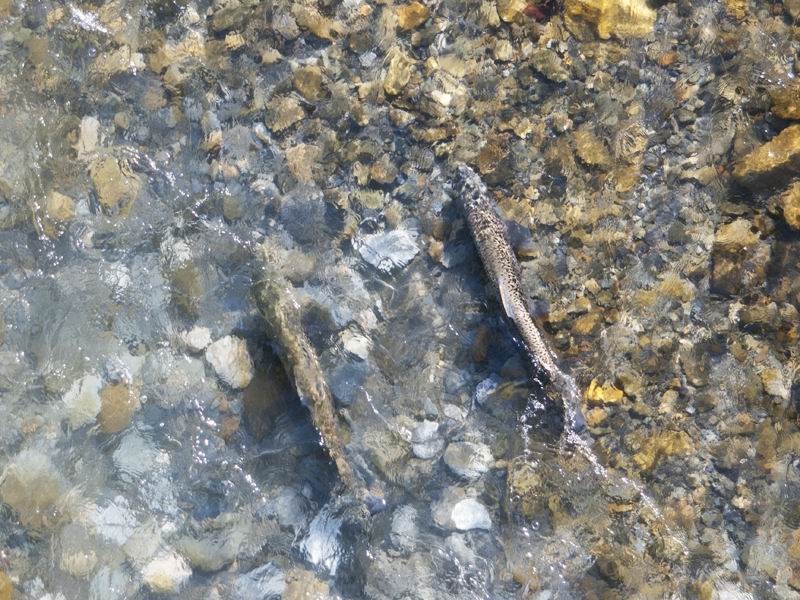 Rivalisierende Seeforellen-Milchner auf der Laichgrube ... | Foto & Copyright: Matthias Meyer