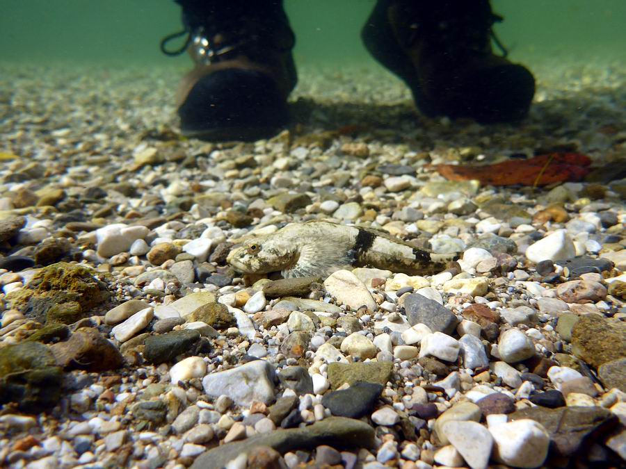 (C-47) | Mühlkoppe mit Fischer, aufgenommen am 08.10.14 an der Salza, Steiermark, Österreich | Foto & Copyright: André Kramer