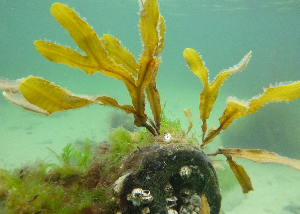 (E-26) | „Dänisches Kraut“ (Wegen des ablandigen Windes war das Wasse rungewöhnlich klar. Der Blasentang wuchs auf einem alten Stegpfahl) | Foto & Copyright: Florian Baumann