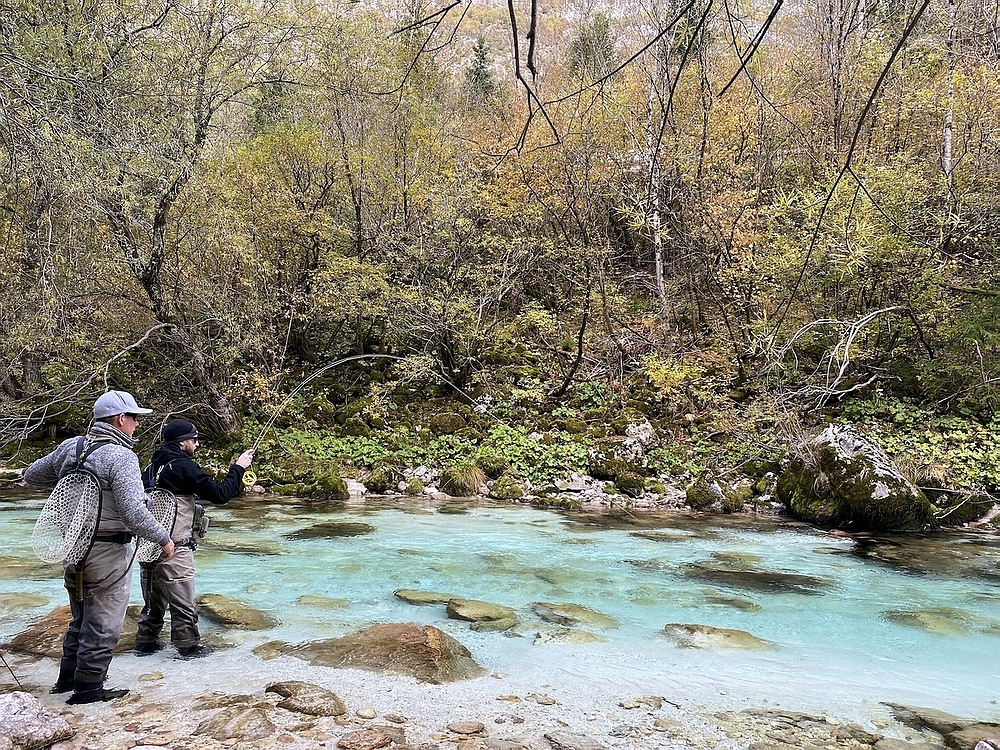 (D-2) | "An der Soca: Im Drill mit einer Regenbogenforelle" (