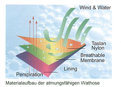 Einen Watschuh muß man sich dem eigenen Geschmack folgend separat zulegen. Ich habe die Hose in den Ausführungen "grau" und "grün" gesehen und mich für das grüne Finish entschieden.....das ist jedoch wie so vieles Geschmackssache. Natürlich hat soviel Bequemlichkeit auch irgendwo einen Haken. Die Hose ist ohne weiteres nur für wärmeres Wasser geeignet. Wer im Spätherbst, Winter oder Frühjahr fischen gehen will, ist gezwungen, sich über geeignete Unterwäsche Gedanken zu machen. Die namhaften Outdoorequipmenthersteller bieten da die verschiedensten Lösungen, denen zumindest ein relativ hoher Preis gemeinsam ist. |