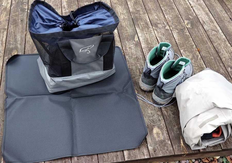 Wie auf den Fotos zu sehen, haben wir ein Paar Watschuhe sowie eine Wathose in der Tasche verstaut - und es bleibt darüber hinaus sogar noch Platz für eine Jacke, Weste oder Kleinkram. Zwei Außenfächer a. 22x15 cm bieten zusätzlichen Stauraum für kleine Utensilien. Weitere Details: - Material: Cordura - Farbe: Grau/Blau - Maße ca.: H40 x B40 x T31 cm - Gewicht inkl. Matte: 1,23 kg - stabile Tragegriffe mit Verbindung oben - Fassungs: komplettes Watsystem - separate 70x70 cm Fußmatte - Klarsichtfach für Namensschild - zwei Außenfächer a. 22x15cm - Preis: 44,90 € Fazit: Eine gute und funktionelle Wattasche mit extra Fußmatte und hervorragenden Preisleistungsverhältnis. Bezug: Erhältlich im gut sortierten Fachhandel oder unter: www.rudiheger.eu |