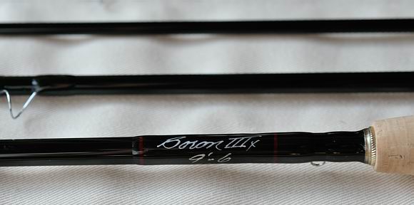 Obwohl sie schneller ist als ihr Vorgängermodell, bleibt die Boron III X immer noch eine spritzige und lebendige Rute, mit der nötigen Feinfühligkeit, gerade bei den Drilleigenschaften. Mit dem relativ kurzen Handteil liegt die Rute sehr gut in der Hand, die Balance stimmt. Ihre Aktion bezeichne ich als semiparabolisch mit Betonung auf den Spitzenbereich. Es macht ungeheuer Spaß diese Rute zu werfen. Ich habe die Rute mit einer WF6 und mit einer WF7 geworfen. Schon auf den ersten Metern nimmt die Rute schnell und sauber Schnur. Bei der WF7 kommt hinzu, daß durch das höhere Schnurgewicht noch mehr Schnur durch die Ringe schießt, was gerade ein Vorteil ist bei Wind und wenn größere Weiten erreicht werden müssen. |