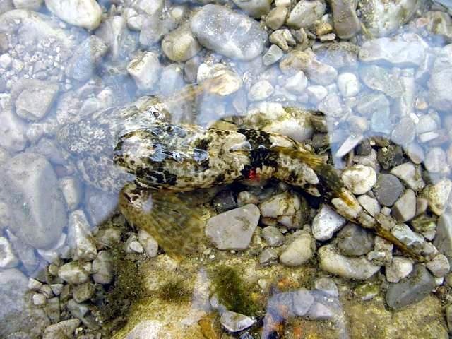 Genau hinsehen! Die Mühlkoppe ist perfekt getarnt. So wird sie auch schnell ein "Watopfer", wenn wir nicht mit offenen Augen durch die Natur gehen ...