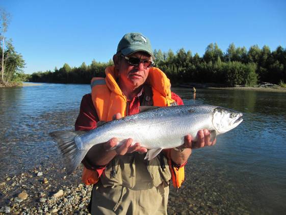 Die gut ausgerüsteten Fliegenfischer schafften schon 10 - 20 frische, silberblanke Lachse am Tag. Und das war