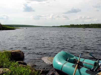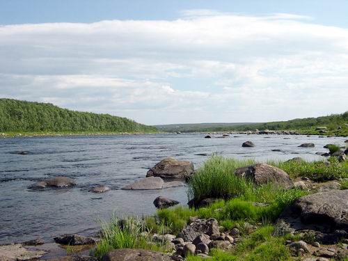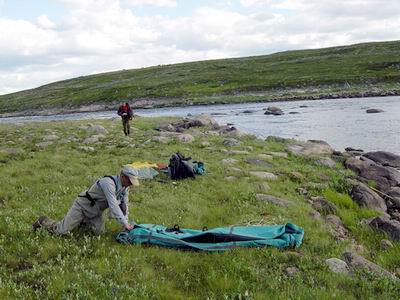 Ich war von der Organisation und dem Engagement der uns betreuenden Leute begeistert. Keiner der von mir bereits besuchten Flüsse hat mich so gefordert und mir auf diese Art und Weise gezeigt, dass mein Können und Wissen noch viele Lücken aufweist. Sollte es meine Geldbörse zulassen, so wird mich der Yokanga wiedersehen. www.kolaco.co.uk/ indexmain.html www.frontierstravel.com/ pages/freshwater/russia/ yokanga.html Rechts: Von „Beat 4“ in Richtung Lodge |