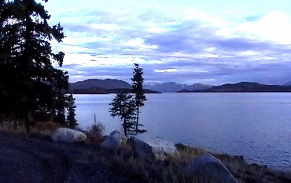 Nur wenige Autominuten von unserer Hütte am Fox Lake entfernt liegt der riesige Lake Laberge, in den an seinem Südende der mächtige Yukon River einmündet, um ihn an seinem Nordende nach gut 30 Meilen wieder zu verlassen. Von einer Anhöhe aus schweift unser Blick über die tiefblaue, von felsigen Ufern umrandete Wasserfläche. Hier wollen wir die großen See-Namaycush-Saiblinge fangen, die uns am heimischen Gewässer bisher verwehrt geblieben sind. |