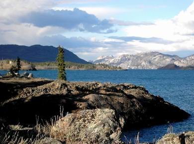 nördlichen Ufer des Lake Laberge verlässt der Yukon