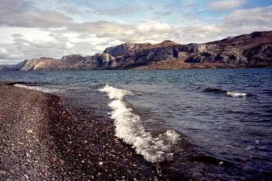 | In einer windgeschützten Bucht, einer von Robs Lieblingsplätzen für solche Zwecke, bereitet er uns ein warmes Mittagsmahl, bestehend aus Gulaschsuppe, heißen Sandwichs, Kaffe und köstlichen Muffins und Donuts. Es schmeckt herrlich in dieser unberührt wirkenden Natur. Wir haben übrigens bis dahin auf dem riesigen See weder ein weiteres Boot noch ein Wasserflugzeug gehört oder gesehen. Die Landschaft gehört uns ganz alleine, und das sollte sich auch bis zur abendlichen Rückkehr nicht ändern – unbegreiflich für unsere überfüllten Verhältnisse zu Hause! |