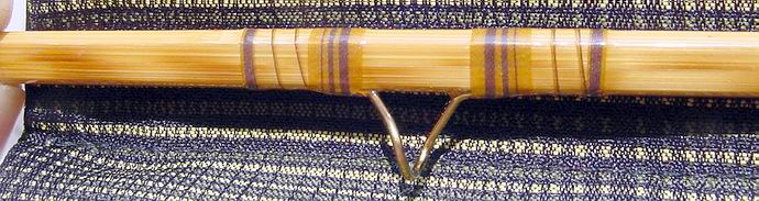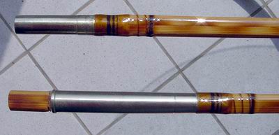 | Nach dem Zusammen- stecken wird zunächst der akkurat gefertigte Blank begutachtet. Er weist keinerlei Fugen oder Unebenheiten auf und ist - bis auf eine ganz leichte, kaum merkbare Linksflucht im Handteil kerzengerade. Im oberen Spitzenteil gibt es eine leichte Links- verwindung: die Ringe sind dadurch etwas aus der Flucht geraten, allerdings nur wenige Millimeter. Dies beweist nur einmal mehr, daß das Geraderichten von 13 Spleißen ein knifflige Angelegenheit darstellt. | ![]() |